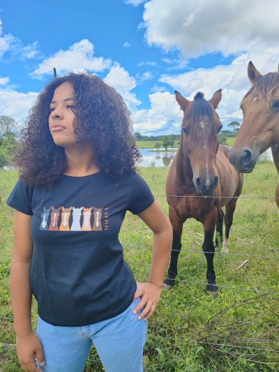 Camiseta com estampa delicada e forte, para montar um lindo look remetendo ao amor por cavalos!