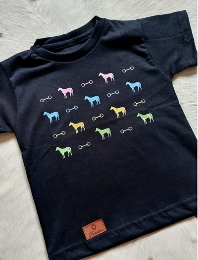 As camisetas unissex são ideais para os pequenos que amam cavalos. Sua estampa traz a escrita em revelo gel, dando um toque de sofisticação à peça!