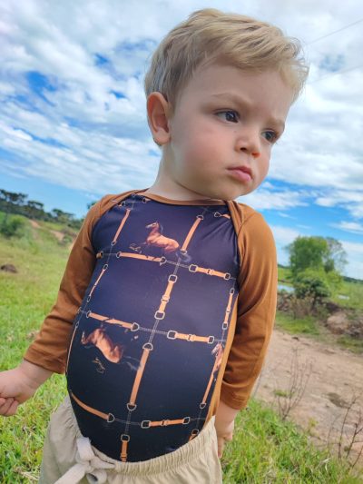 Body Bebê Paysano, é para os bebês já mostrarem seu amor pelos cavalos. Lindos e estilosos!