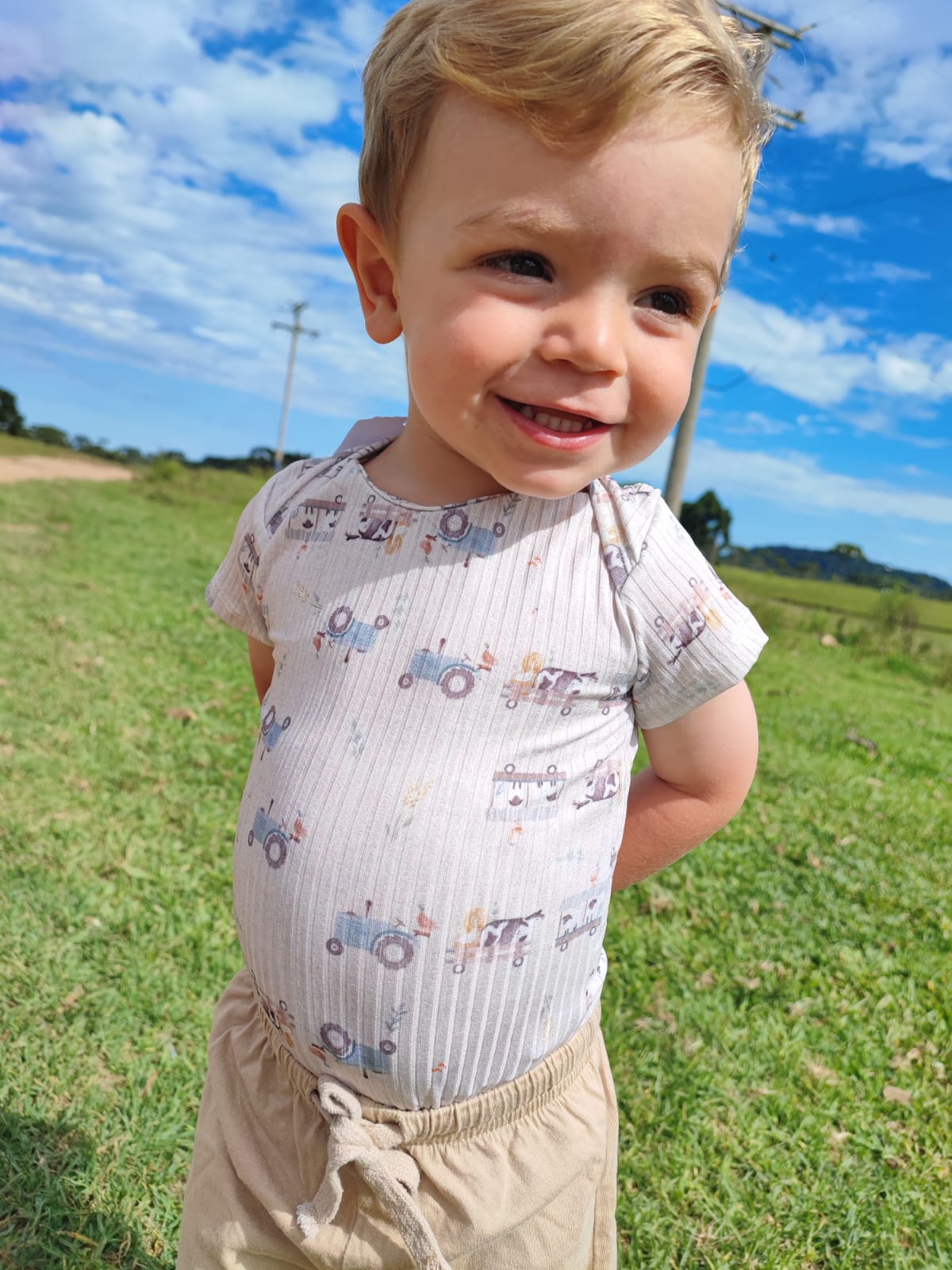 Bebê confortável e mini adorador de cavalos, precisa estar com o body Potros no look!