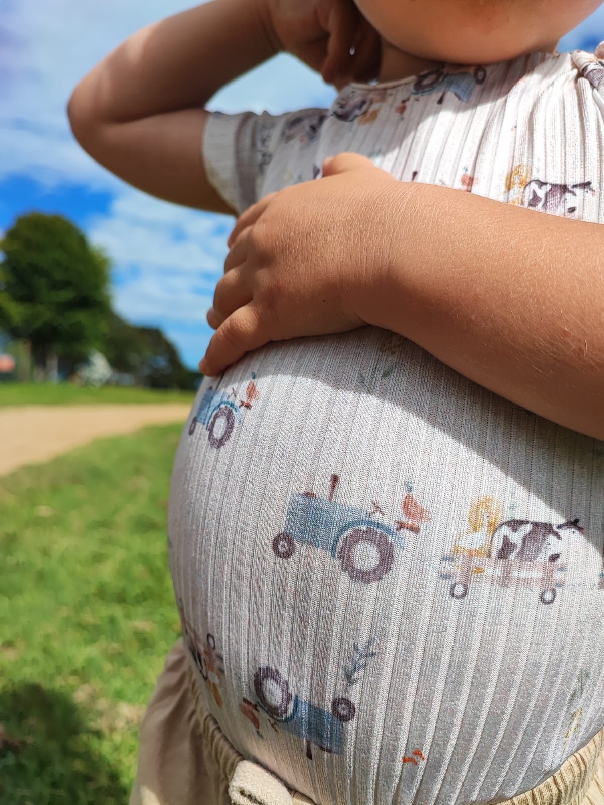 Estampa de trator e vaca holandesa