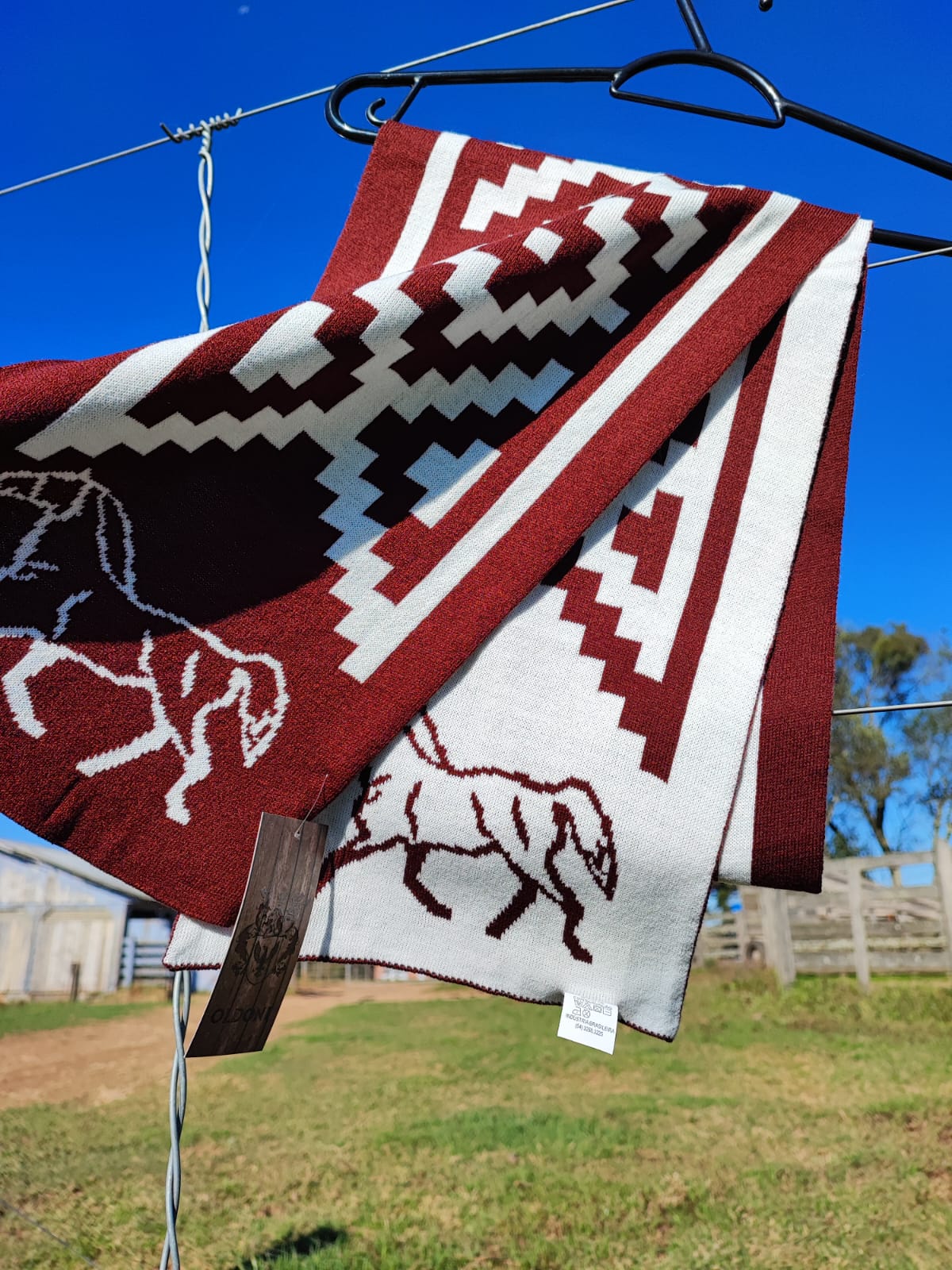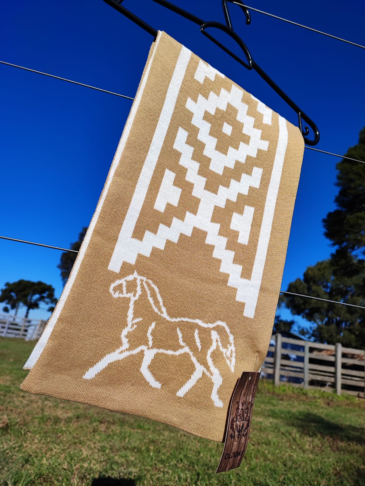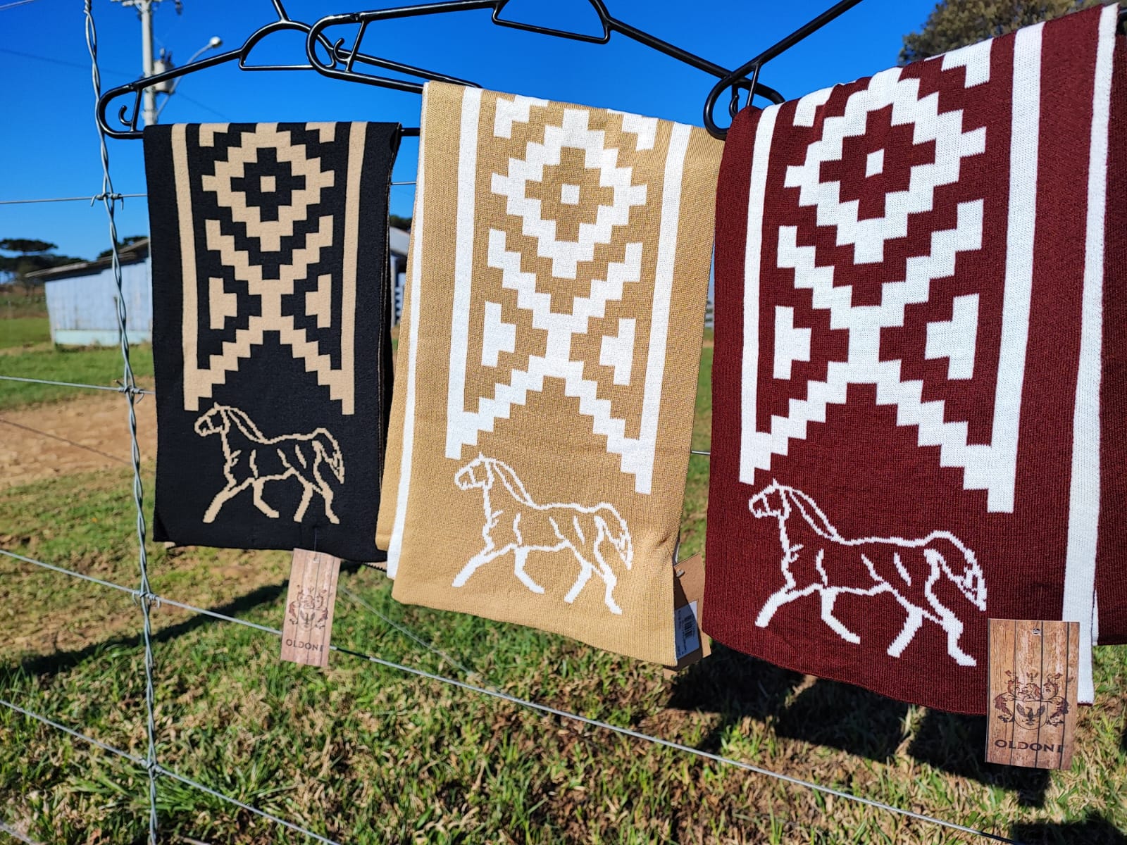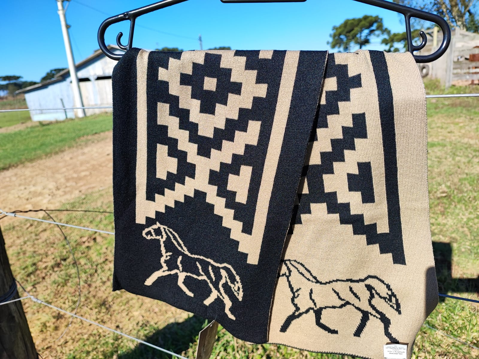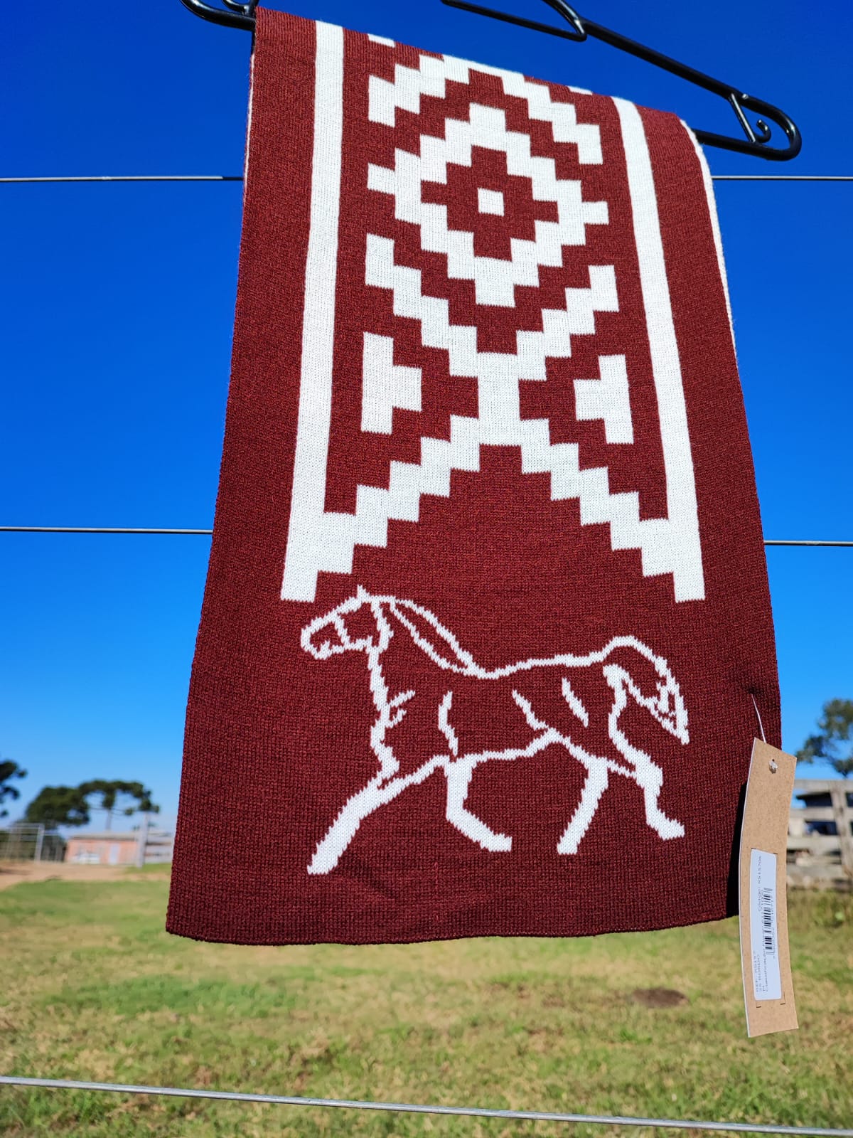 Cachecol com faixa pampa e cavalo, para deixar o look bem campeiro!
