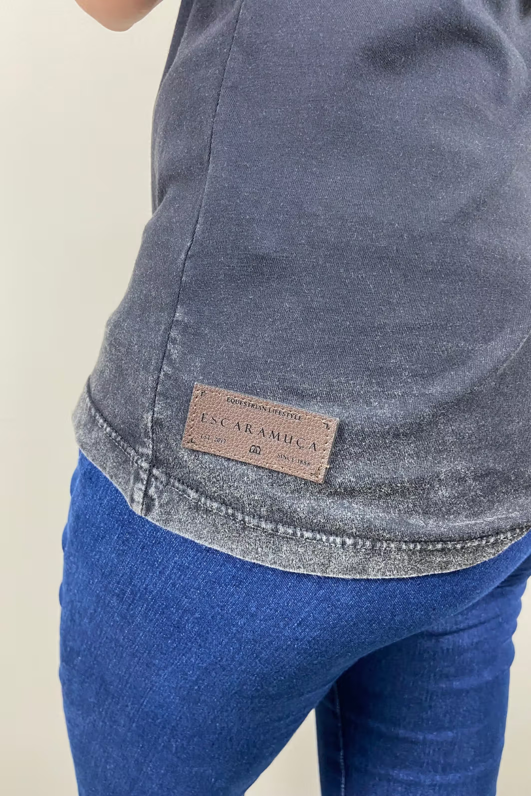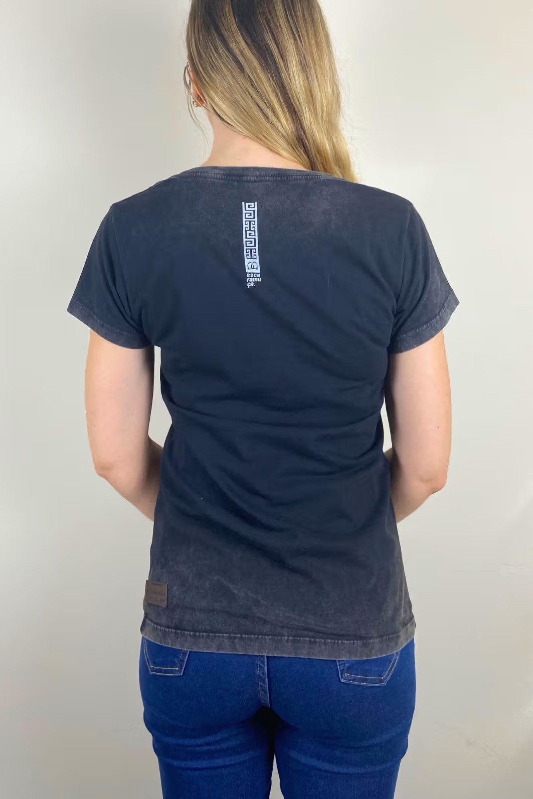 T-shirt feminina em malha 100% algodão premium, lavada e tingida na cor preta