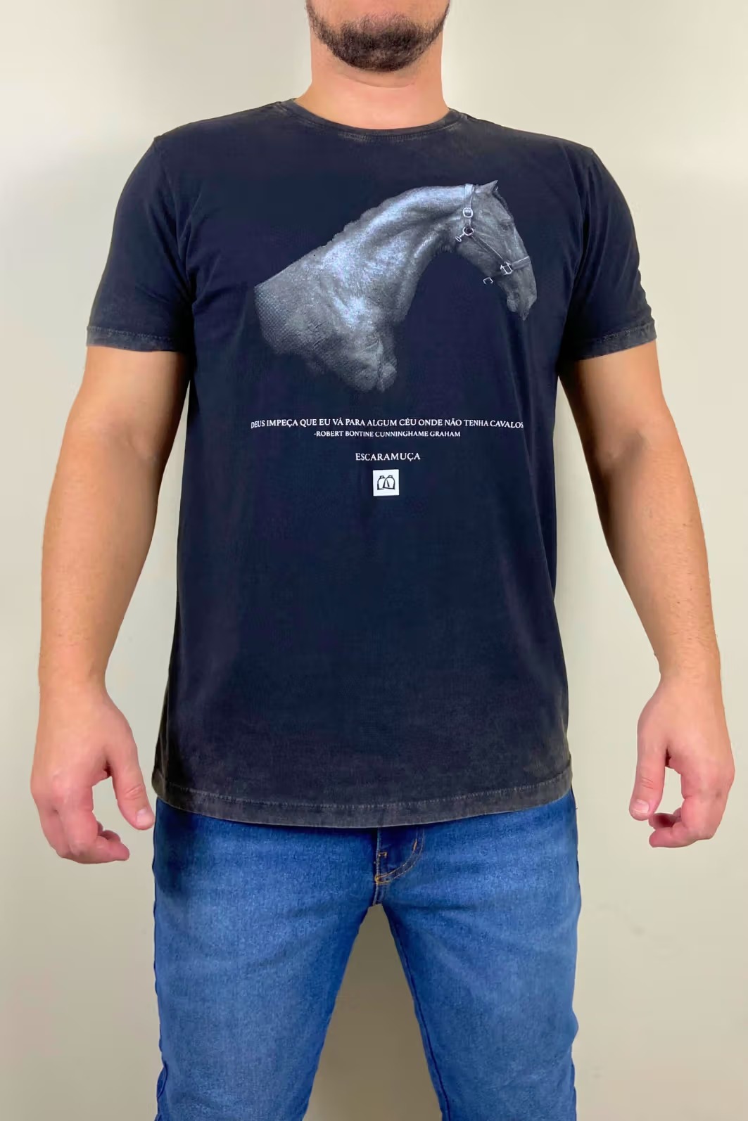 Além do diferencial da estampa autêntica, tem a lavanderia marmorizada do avesso, que traz detalhes únicos nas extremidades da peça! Sem contar a estampa adicionando um toque do estilo Escaramuça de ser!