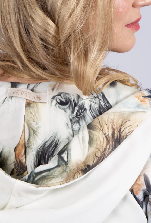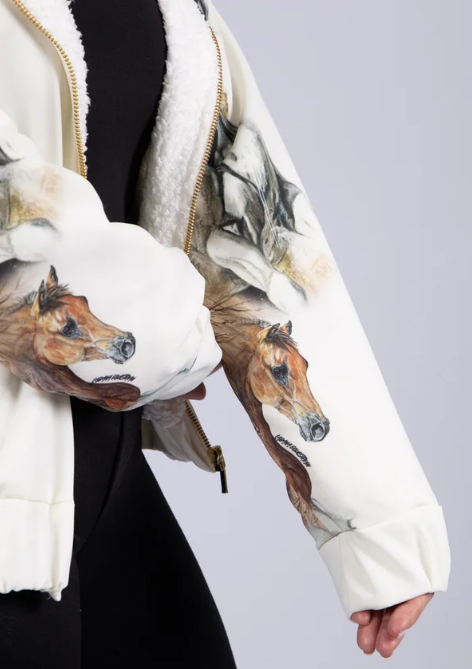 Estampa: Sublimada de cavalos nas mangas e capuz